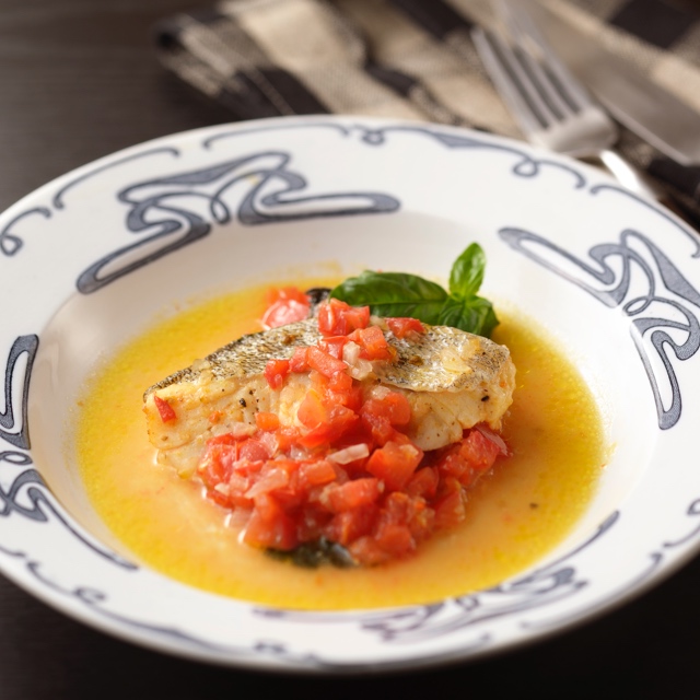 - ココットダッチオーブンに(1)を並べ、(2)とフレッシュバジルと(A)を入れ、オリーブ油をかけ、蓋をしてグリルに入れる。