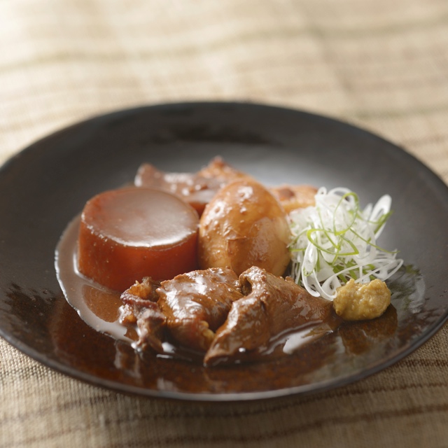 名古屋飯のみそおでん。みその風味と濃厚な甘みが一度食べるとやみつきに。
