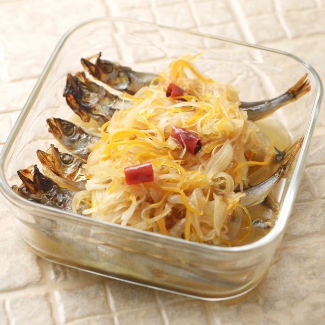 - ししゃもを取り出しバットに並べ、残りの野菜と汁をかけ15分程度漬け込む。